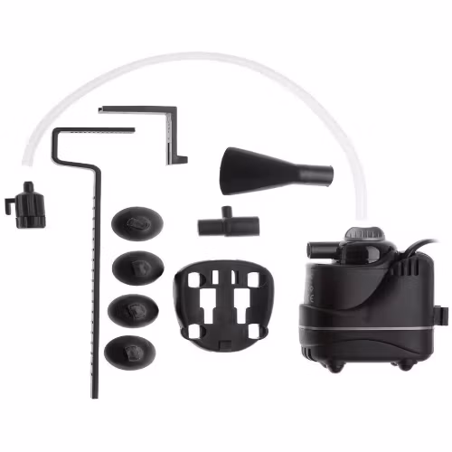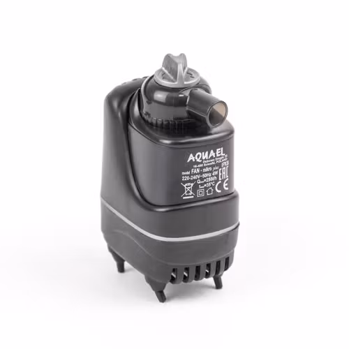 Pumpens utblås kan enkelt justeras upp till 75° samt att flödet kan regleras via vredet ovanpå utblåset. Aquael Fan Micro Plus levereras komplett med filtersvamp, fästen, vinklat utblås och syreslang för att tillföra extra syre i akvariet via venturimunstycke.