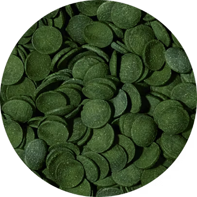 Ett färdigportionerad vegetabilisk foder i form av sjunkande wafers. Stor vattenstabilitet av fodret möjliggör att fiskar kan livnära sig på ett naturligt sätt - i naturen skrapar många harneskmalar bort födan från hårda ytor. Stort kostfiberinnehåll och tillsats av kelp alger (4%), spirulina alger (3%) samt 2% löv från det tropiska mandelträdet (Terminalia Catappa). Spirulina alger kallas även "mirakelalgen" eftersom det innehåller mer än 100 olika näringsämnen med hög nivå av värdefulla proteiner, vitaminer, mineraler och spårämnen, samt olika färgstärkande pigment, som gör att fiskars färg snabb ökar i intensitet.