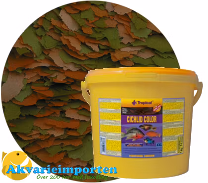 Cichlid Color är ett kraftfullt färgförstärkande och proteinrikt flingfoder som innehåller en optimal balans av värdefulla näringsämnen. Fodret har en positiv effekt på bl.a. snabb tillväxt av fiskyngel, korrekt fiskutveckling, färgförstärkning samt bättre motståndskraft mot sjukdom. Cichlid Color innehåller bl a astaxantin (56 mg/kg), välsmakande krill (min 1,5 %) och bläckfisk (min 1,5%), brännässlor (min. 2,5%) och spirulina-alger (min 1%). Fodret har även berikats med betaglukaner som stärker immunförsvaret samt beta-karoten (145 mg/kg) och lecitin.