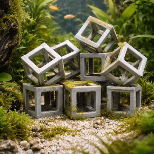 Räkor trivs som bäst i miljöer med många gömställen, nivåskillnader och naturliga strukturer. Genom att använda flera kuber kan du bygga ett helt litet “räklandskap” i ditt akvarium, med gångar, håligheter och skyddade platser där räkorna känner sig trygga. Det minskar stress, ökar naturligt beteende och ger bättre förutsättningar för både färg, aktivitet och fortplantning.
