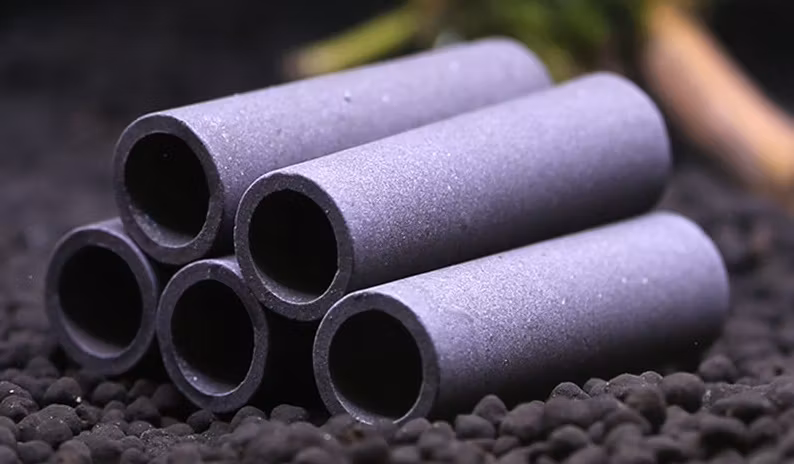 Rören sitter ihop och är öppna i båda ändarna, dom är gjorda i keramik som är godkänt för bruk i akvarium och skadar varken fisk, räkor eller växter.