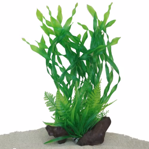 Akvarieväxter ger fiskarna en omväxlande och spännande miljö med flera revirområden och platser för lek och vila. Dekorationen har en stabil fot som gör att växten kan placeras på många och olika sätt i ditt akvarium. Plastväxter ger ett lummigt intryck i ditt akvarium.