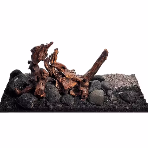 Midnight Veil Riverbed fördjupar ditt aquascape i hjärtat av ett vulkaniskt landskap. Den svarta Midnight Sand i kombination med grova lavastenar skapar en sammanhängande, obsidianliknande botten som låter det karaktärsfulla Worn Wood ta huvudrollen. De vridna drivvedsskulpturerna, med sin rika textur och känsla av uråldriga, förkolnade rötter, blir kompositionens naturliga fokuspunkt, där deras varmare toner glöder mot den mörka bakgrunden.