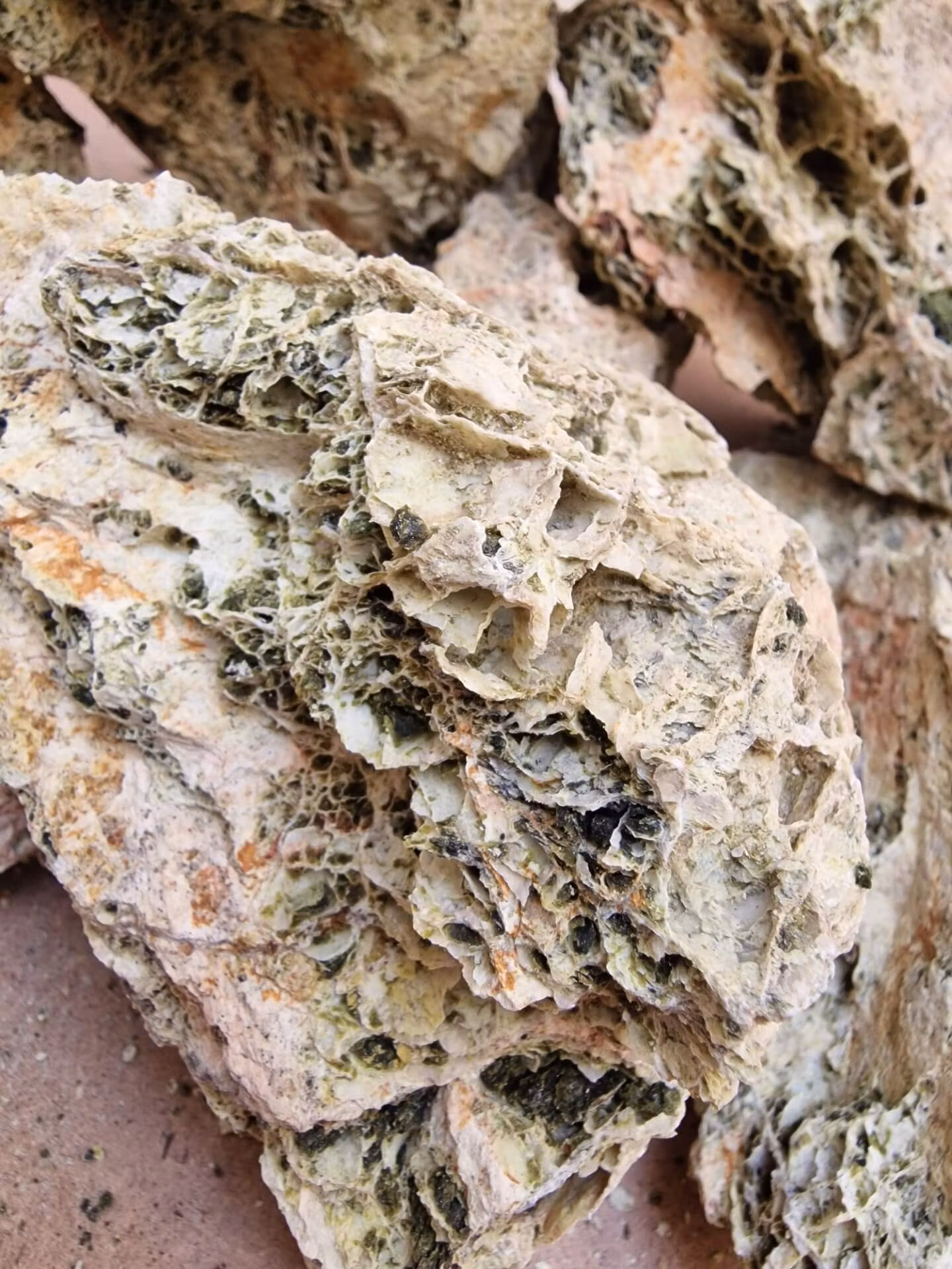 - Typ av sten: Porös sedimentär kalksten (karbonatsten)