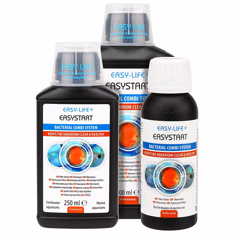 För att stabilisera ett nyetablerat akvarium under cyklingsfasen, neutralisera orenheter mm och göra vattnet optimalt för att kunna tillsätta fisk på ett säkert sätt är EasyLife EasyStart en bra tillsats. EasyStart tillför en unik kombination av högaktiva bakteriekulturer vilka påskyndar tillväxten av goda bakterier samtidigt som den binder metaller och minskar uppkomsten av dåliga bakterier samt reducerar nitrit. Resulatet blir ett hälsosamt akvarium med friska livliga fiskar.