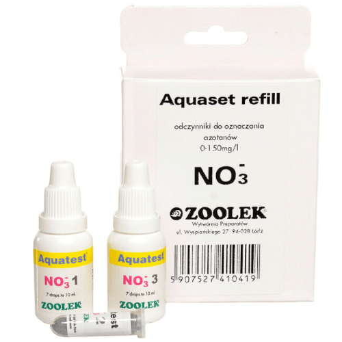 Med detta testkit kan du enkelt mäta nitrathalten (NO3) i ditt akvarium – slutprodukten i kvävecykeln. Testet mäter i intervallet 0–150 mg/l och hjälper dig att hålla koll på vattenkvaliteten och förebygga algproblem.